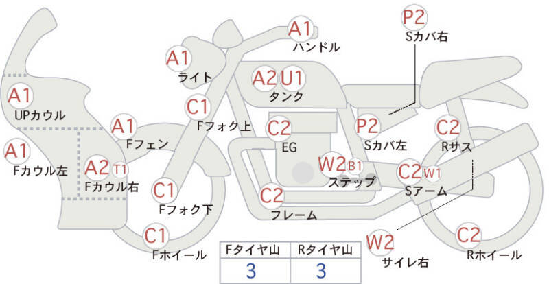 Красным маркером на схеме отмечаются места косметических повреждений.