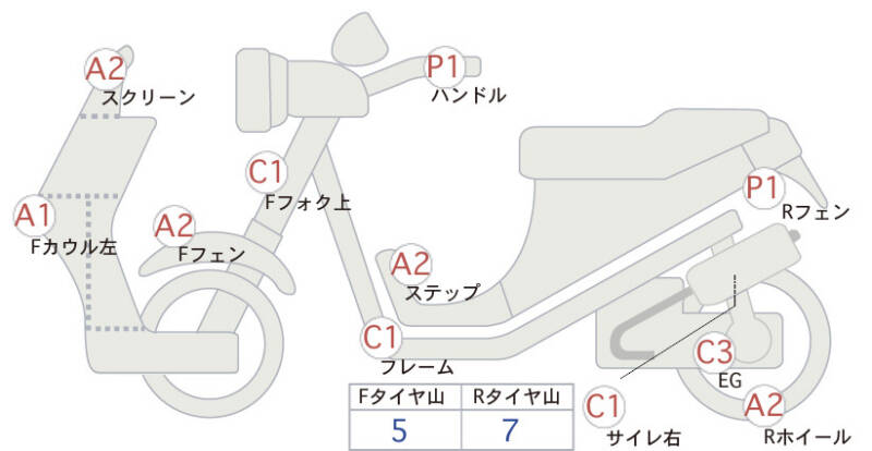 | Переднее крыло | царапина <2> |