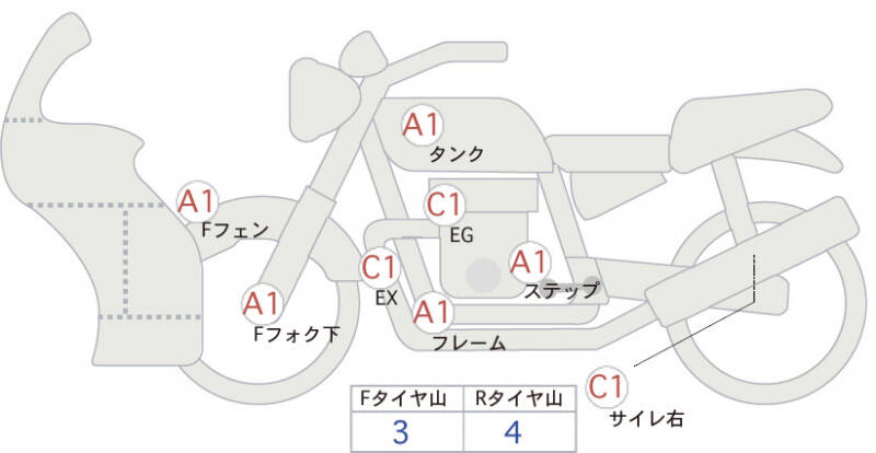 Красным маркером на схеме отмечаются места косметических повреждений.