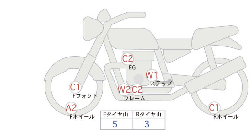 Красным маркером на схеме отмечаются места косметических повреждений.