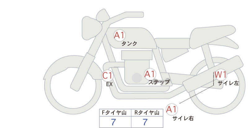 Красным маркером на схеме отмечаются места косметических повреждений.