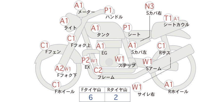 Красным маркером на схеме отмечаются места косметических повреждений.