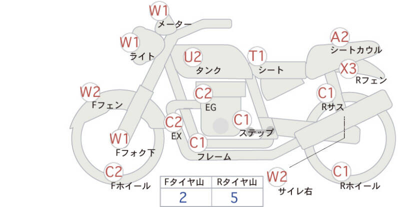 Красным маркером на схеме отмечаются места косметических повреждений.