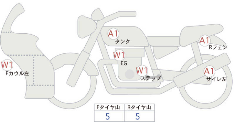 | Левая часть переднего обтекателя | царапины, потертость <1> |