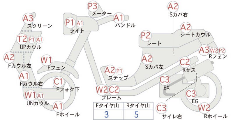 | Переднее колесо | царапина <1> |