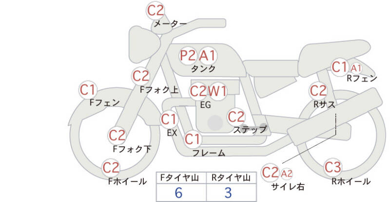 Красным маркером на схеме отмечаются места косметических повреждений.