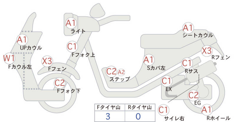 | Обтекатель сиденья | царапина <1> |