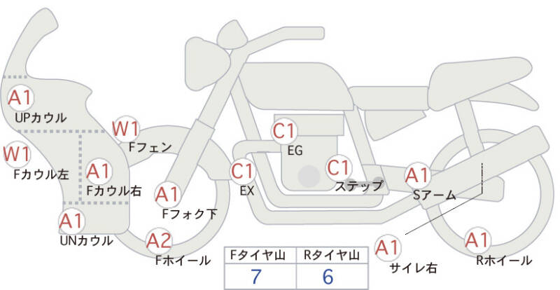 Красным маркером на схеме отмечаются места косметических повреждений.