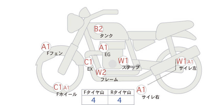 Красным маркером на схеме отмечаются места косметических повреждений.