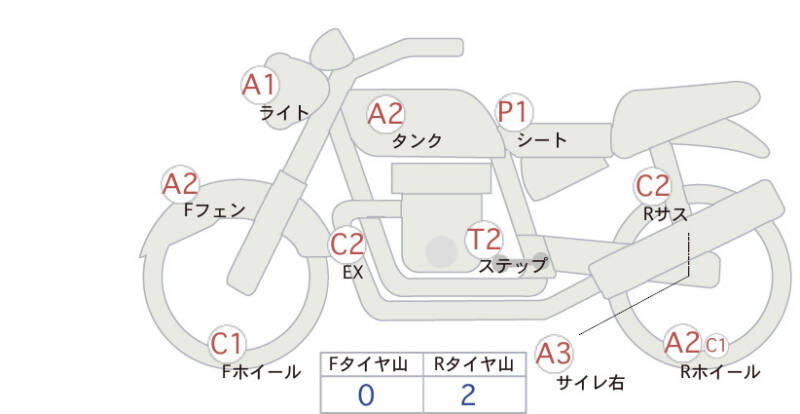 Красным маркером на схеме отмечаются места косметических повреждений.