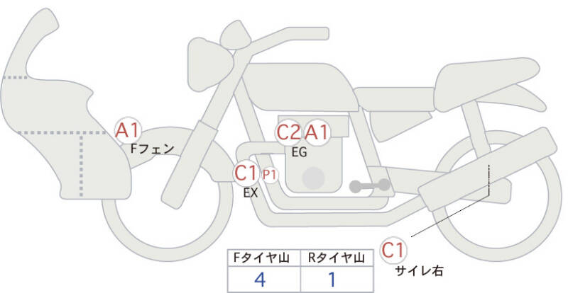 Красным маркером на схеме отмечаются места косметических повреждений.