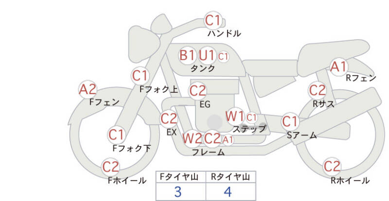 Красным маркером на схеме отмечаются места косметических повреждений.