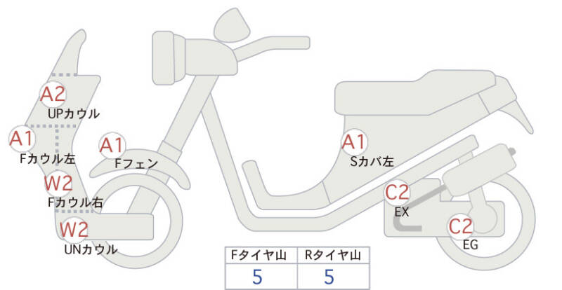 | Правая часть переднего обтекателя | царапины, потертость <2> |