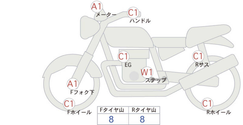 Красным маркером на схеме отмечаются места косметических повреждений.