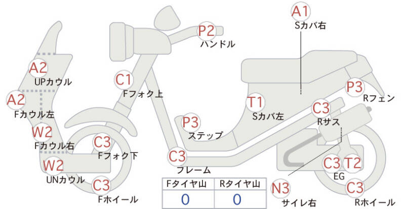 Красным маркером на схеме отмечаются места косметических повреждений.