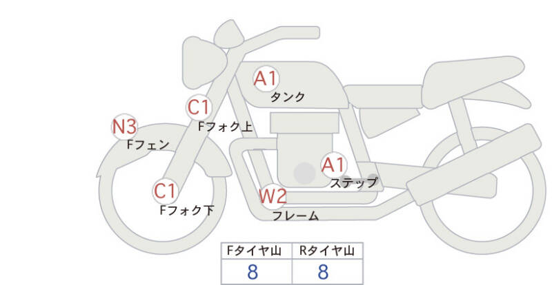 Красным маркером на схеме отмечаются места косметических повреждений.