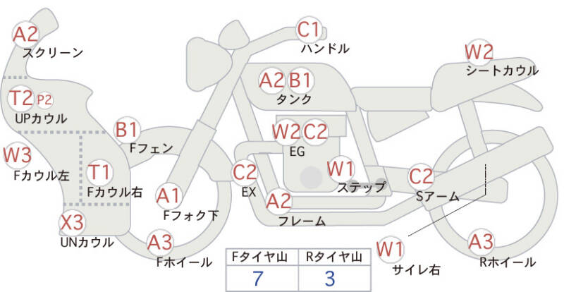 Красным маркером на схеме отмечаются места косметических повреждений.