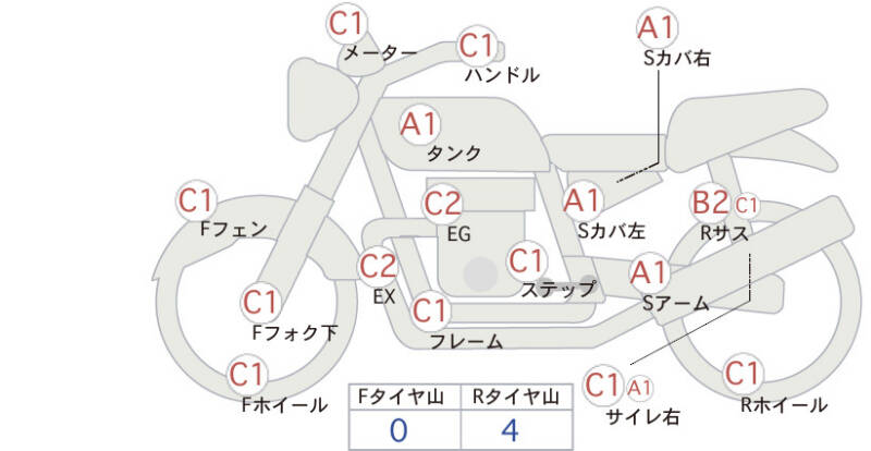 Красным маркером на схеме отмечаются места косметических повреждений.