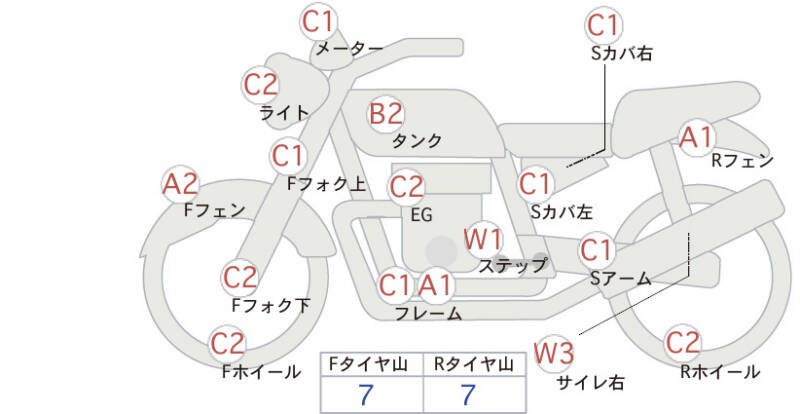 Красным маркером на схеме отмечаются места косметических повреждений.