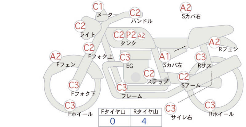 Красным маркером на схеме отмечаются места косметических повреждений.