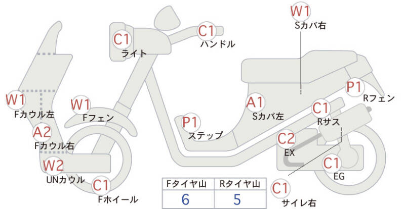 Красным маркером на схеме отмечаются места косметических повреждений.