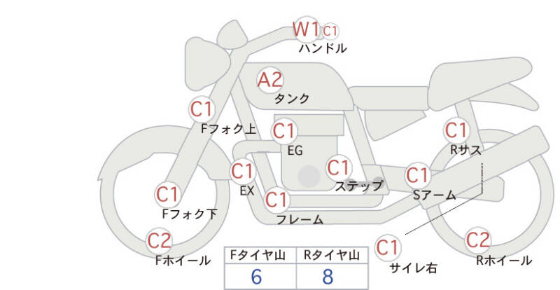 Красным маркером на схеме отмечаются места косметических повреждений.