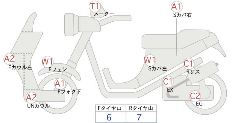 Красным маркером на схеме отмечаются места косметических повреждений.