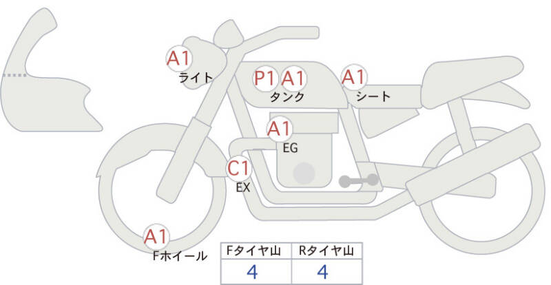Красным маркером на схеме отмечаются места косметических повреждений.