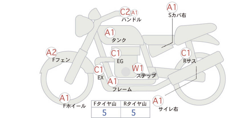| Переднее колесо | царапина <1> |