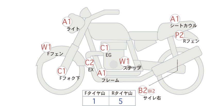 | Обтекатель сиденья | царапина <1> |