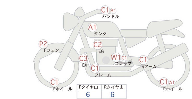 Оценивание элементов проводится в следующем порядке: внешний вид, двигатель, рама, подвеска.