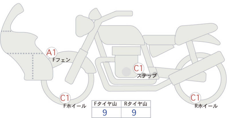 Красным маркером на схеме отмечаются места косметических повреждений.